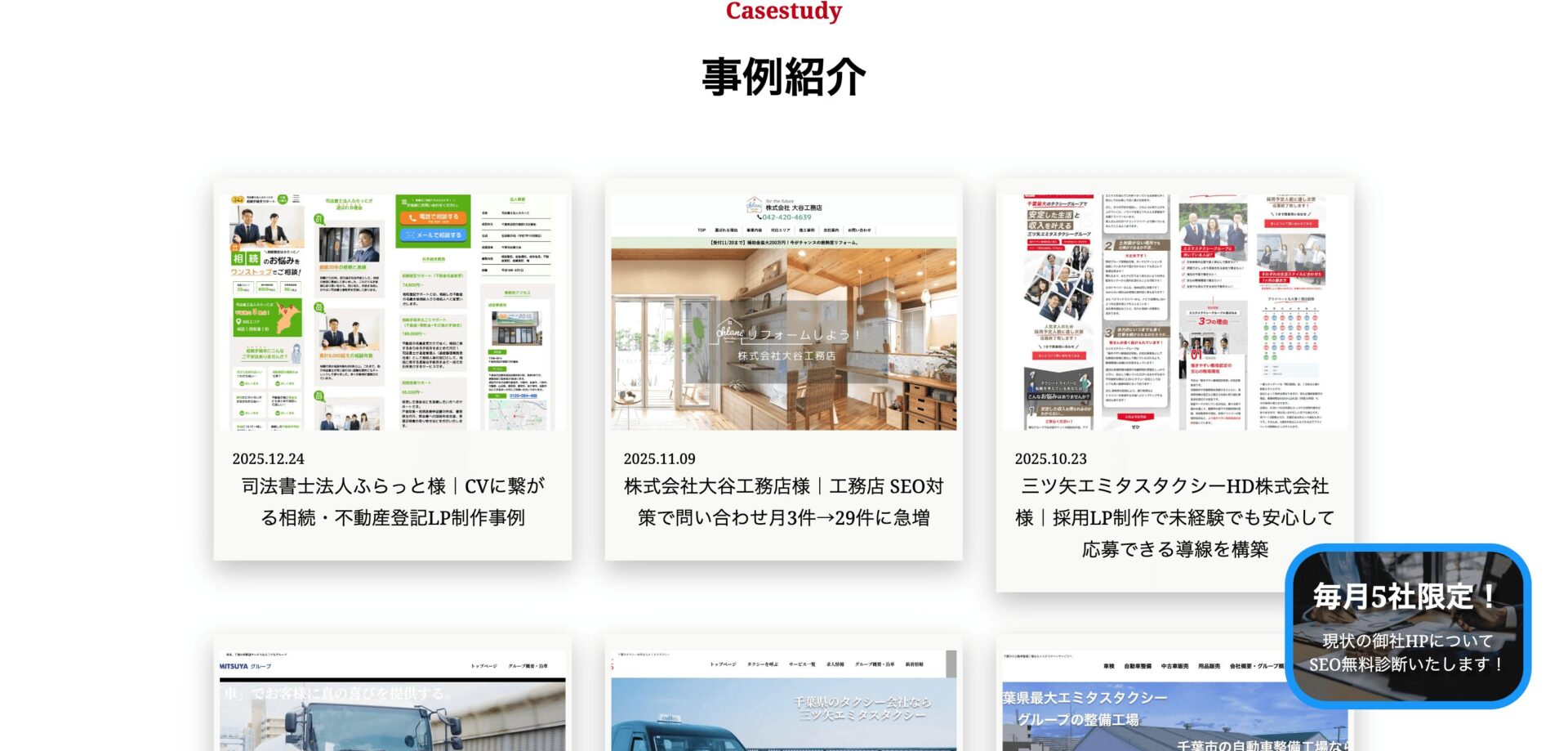 事例が増えるほどサービスページやブログ記事とも“線”でつながり、回遊と納得が作りやすくなります。