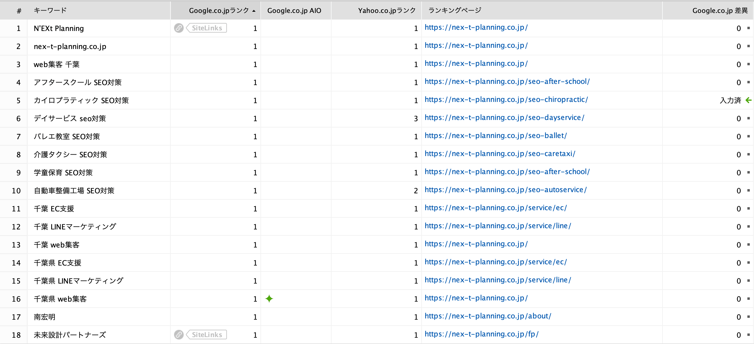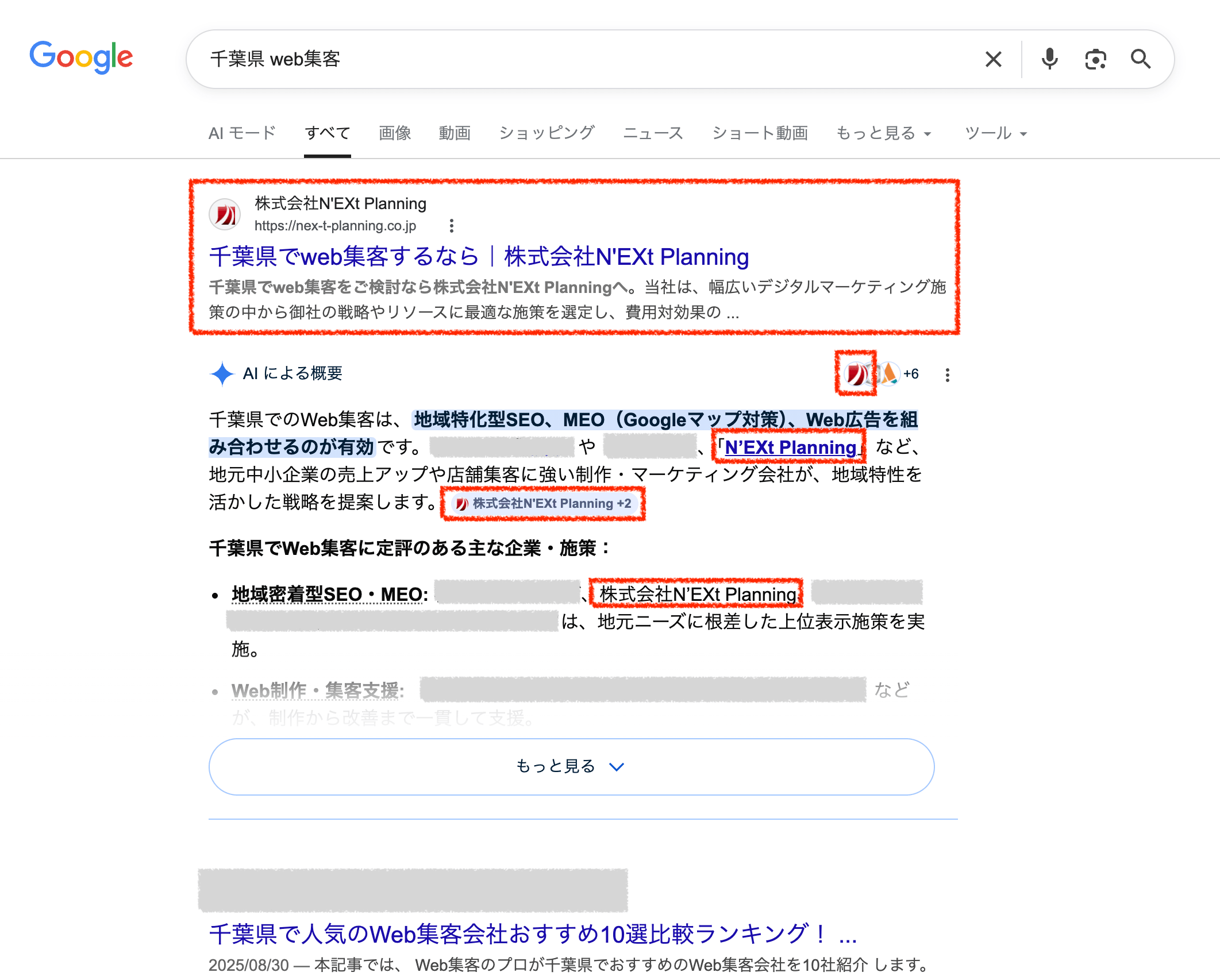 株式会社N’EXt Planningは、自社サイトを継続運用し、「千葉県 web集客」で検索順位1位、AI Overview(AIO)掲載、さらに地域×サービス、業種×SEO対策、指名検索といった多様なキーワード群で上位表示を実現してきました。